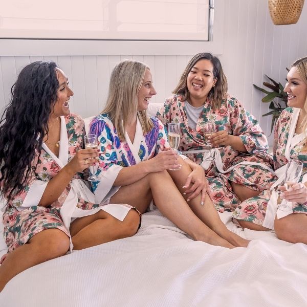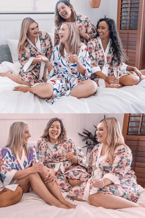 Collection of bridal, bridesmaids and bridesmates robes with dreamy print patterns, perfect for getting ready on your wedding day.